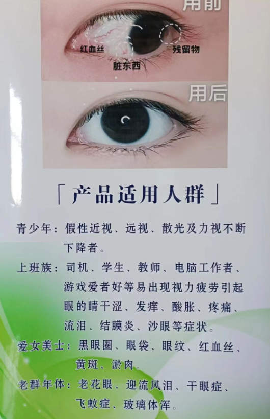 可提高眼睛免疫力。長效保濕、深度清潔.舒緩疲勞.滋著眼球。適用于青少年近視、遠視.老花眼,眼睛干澀.紅血絲等適用人群.