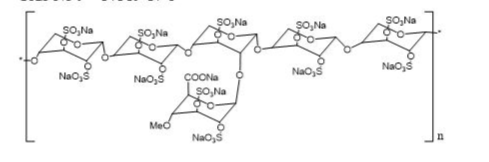 木聚硫鈉(愛必羅)數(shù)十年前發(fā)現(xiàn)于歐洲,用于治療間質(zhì)性膀胱炎,是一種半合成的肝素類大分子碳水化合物衍生物,化學(xué)性質(zhì)和結(jié)構(gòu)式類似于糖胺聚糖。是一種白色無味粉末,輕微吸濕,在PH=6時(shí)能溶于水至50%。分子量從4000Da--6000Dd。具有抗凝和纖溶作用,在治療間質(zhì)性膀胱炎中的作用機(jī)制尚不清楚。