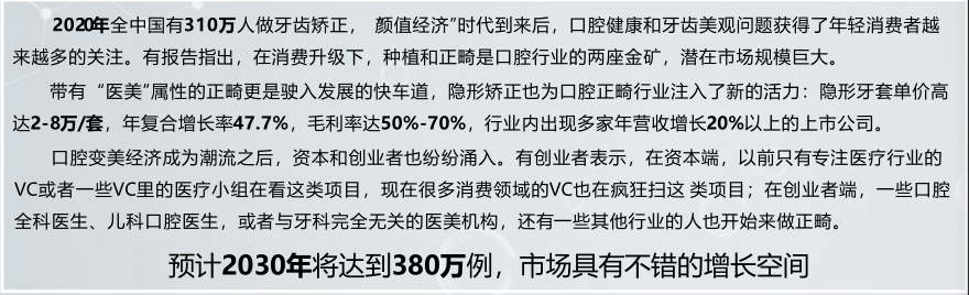 4. 中國隱形矯治市場在2019年成為世界第二大市場。中國通過隱形矯治器解決的正畸案例數(shù)目由2015年的4.78萬例增至2020年的33.55萬例,復(fù)合年增長率為47.7%,并預(yù)期將于2030年達(dá)到380萬例以上, 復(fù)合年增長率為27.6%。