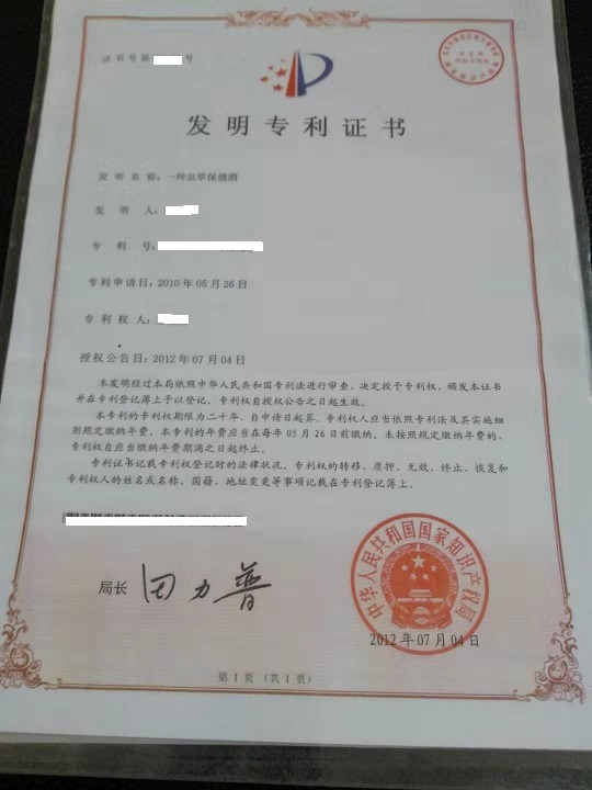 某省某×**酒業(yè)有限公司坐落在美麗的××腳下。豐厚的人文文化和水上之情養(yǎng)育了善良勤勞的×人們。好山好水出好酒,我們秉承××人一貫的勤勞樸素的傳統(tǒng),創(chuàng)建了養(yǎng)生保健酒“××牌靈芝××××枸杞酒”(保健食品批準(zhǔn)文號:201××098。專利號:ZL2××10192826.4)。